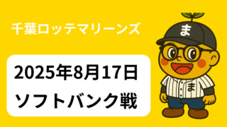 応援日記 8月ももうすぐ終わり|2025年8月29日|千葉ロッテマリーンズ対福岡ソフトバンクホークス ZOZOに戻ってソフトバンクと試合は、1-3ボスはクオリティスタートでも、これで8敗目。歯車が噛み合わない、チグハグな今季の象徴ですな🥲 2025.08.29 応援日記