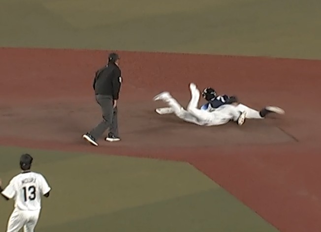 さらにタッチアップを狙った走者を、小川選手がセカンドベースめがけダイビングタッチ。