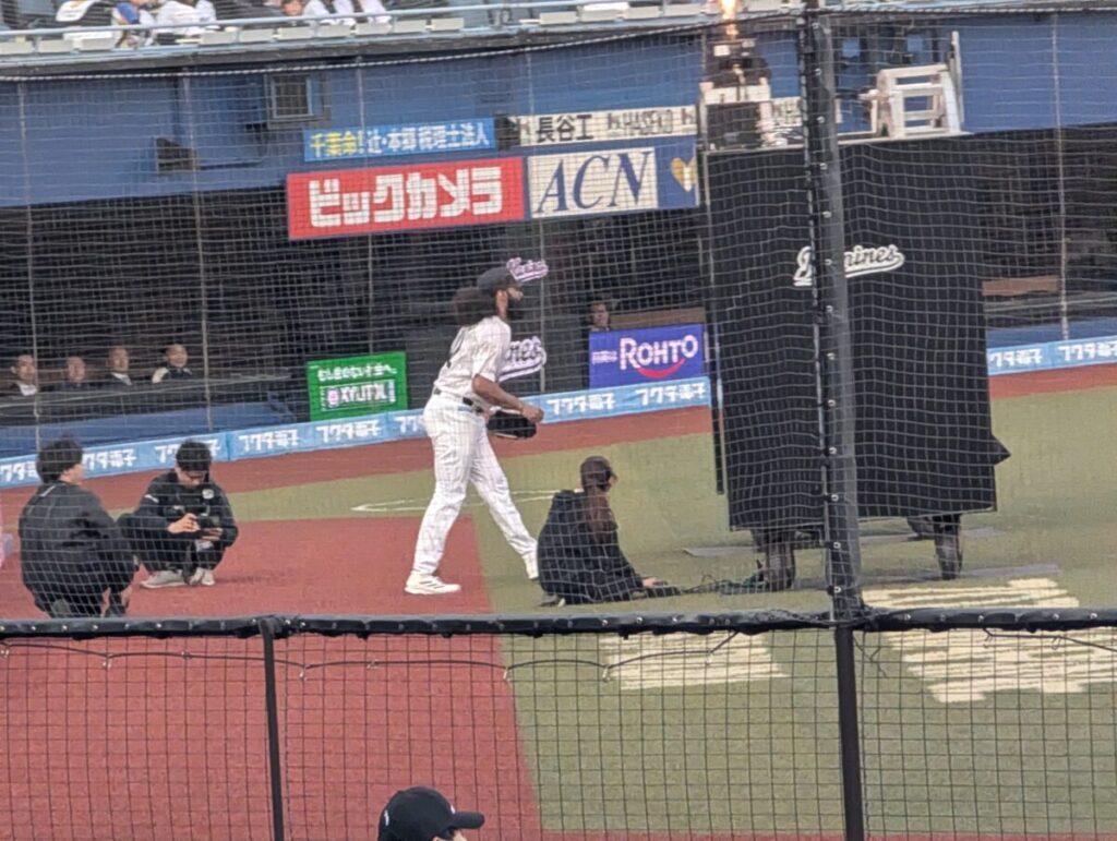 今日は、マリンの風が本領発揮。試合開始時には10メートル、確認できただけでもこの日は最大13メートルほど。そんなマリン特有の強い風のなか、ロッテの先発はジャクソン投手。マリンでの初勝利が欲しいマウンドでした。