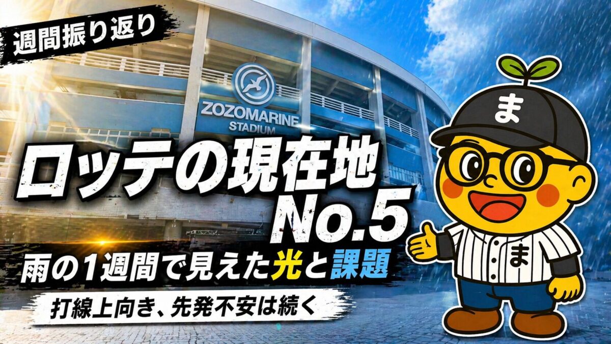 先週のロッテは、雨に遮られながらも、限られた試合の中で前向きな材料を見せた1週間でした。オリックス戦とソフトバンク戦を通じて2勝1敗。試合数は少なかったものの、打線には長打の兆しが見え、勝てた試合の内容には確かな明るさもありました。ただ、その一方で、先発が長い回を安定して投げ切れないという課題は依然として重く残っています。打線は少しずつ上向き、投手はリリーフ陣が踏ん張る。それでも、チーム全体として勝ち筋がまだ細い――。