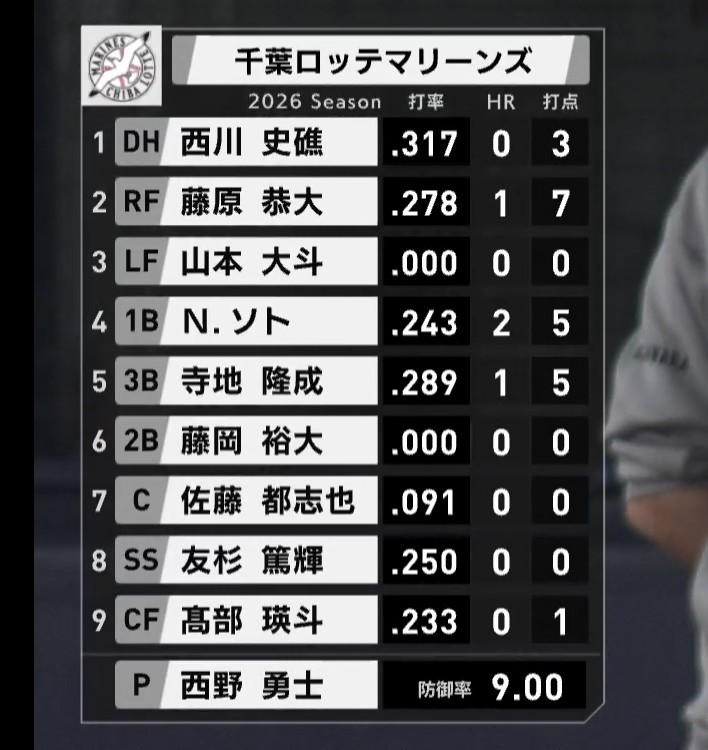 昨日の大敗でロッテは4連敗。単独最下位に転落しました。今日はなんとしても勝って、崖っぷちから一歩前進したいところです。