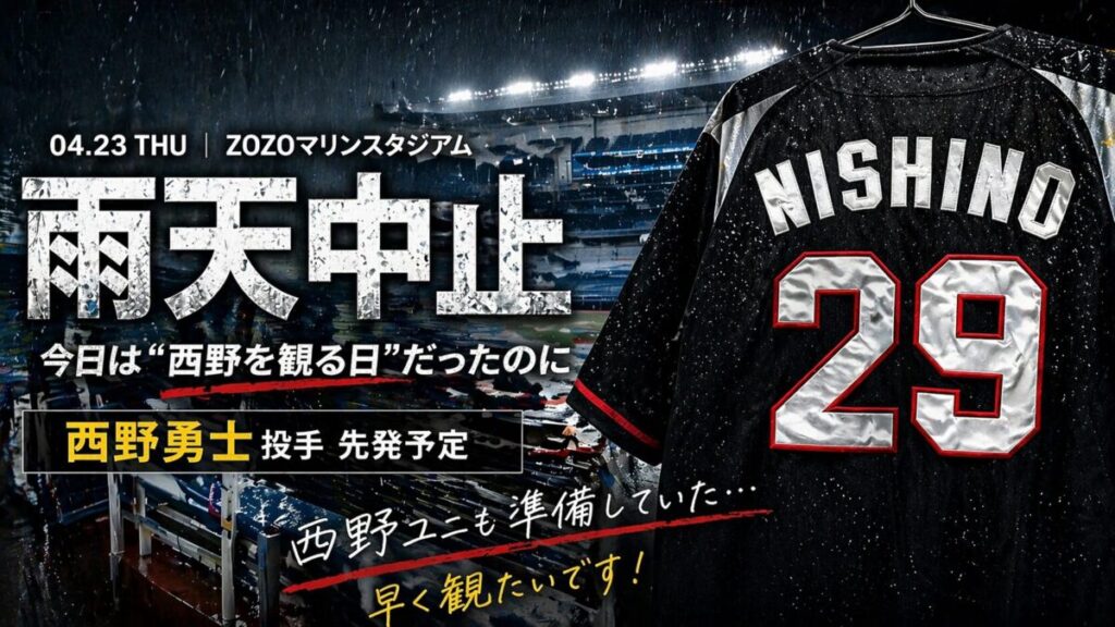 【雨中】西野勇士|今日は“西野を観る日”だったのに、オリックス戦は雨天中止